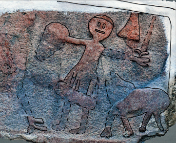 Kvaderen er desværre ret medtaget af vind og vejr, muligvis har den endog været udsat for ild. Det er dog stadig muligt at se figurer på den.