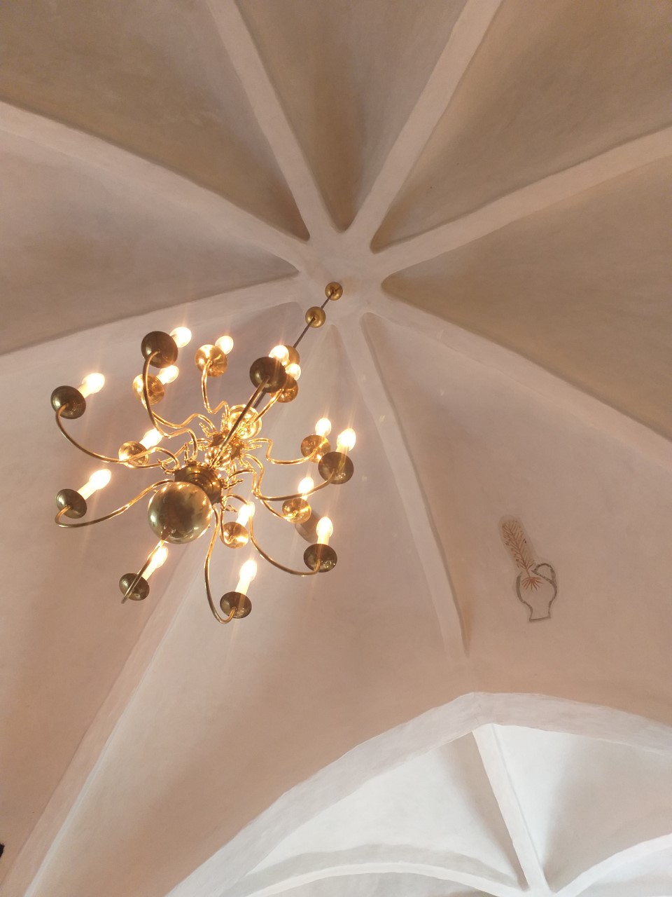 Væggene blev formentlig malet hvide, mens man bemalede hvælvingerne, ribber og mursøjler i pileformede, flerfarvede mønstre.